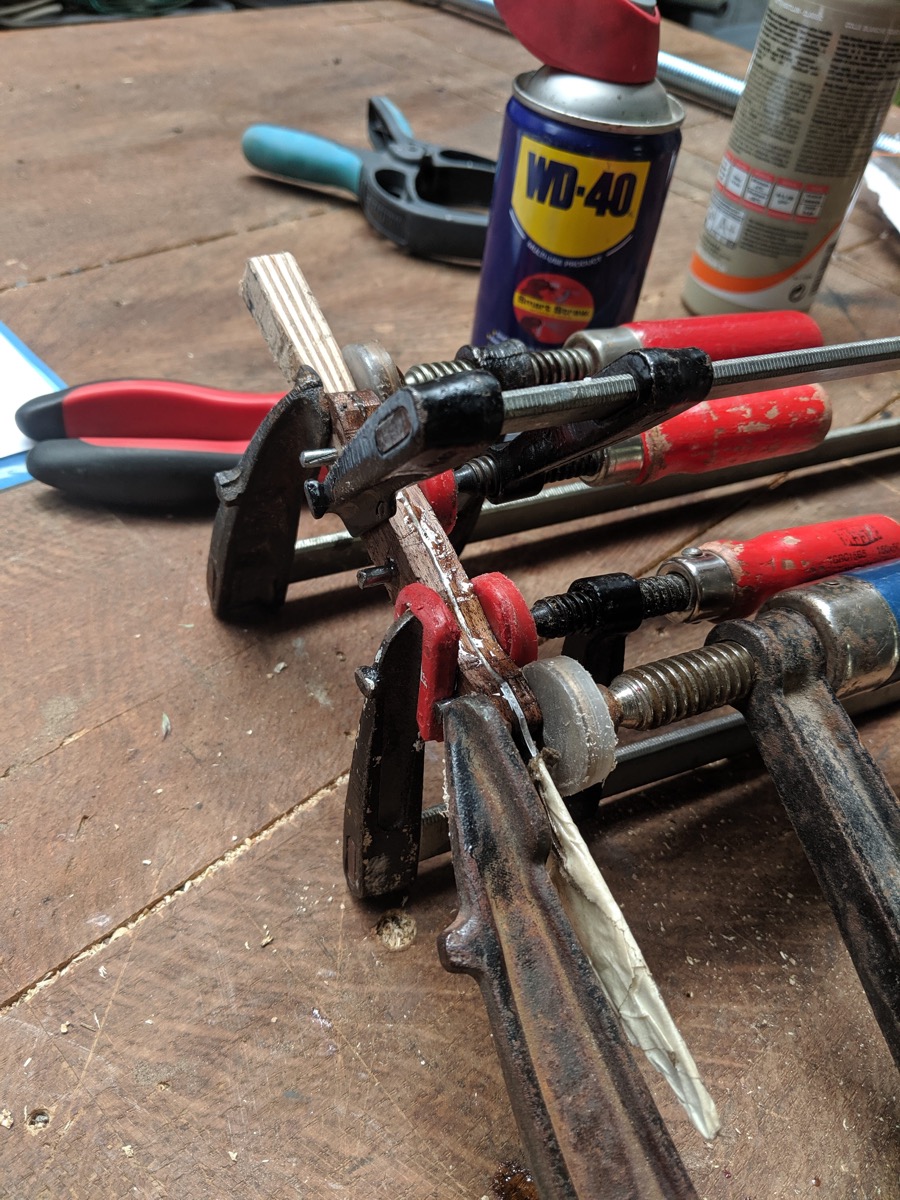 Traced the shape on a blank, cut it out using the bandsaw and then glued everything together with 5 minute epoxy. Used a stainless nail for the pins.